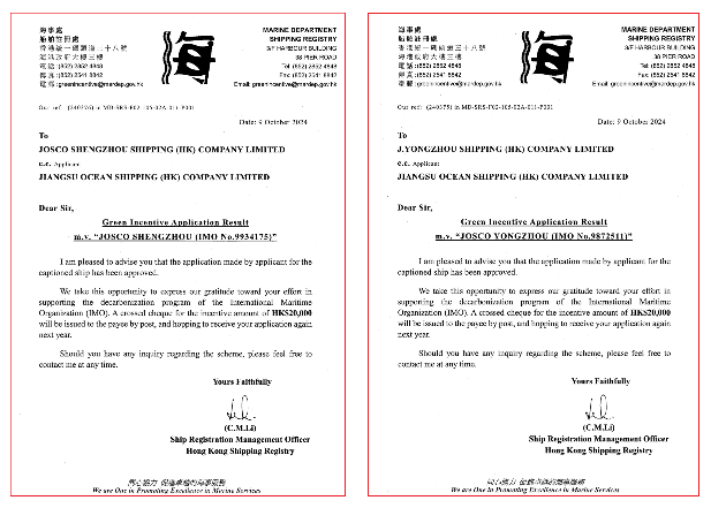 • 江蘇遠洋18艘香港籍船獲香港海事處“綠色激勵計劃”低碳獎勵2024-10-18